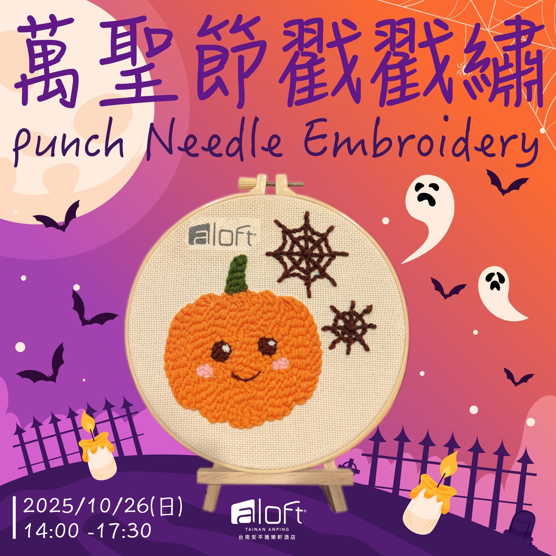 台南安平雅樂軒酒店推出萬聖節限定「萬聖節南瓜戳戳繡手作課程」,邀您描繪節慶的趣味與創意。